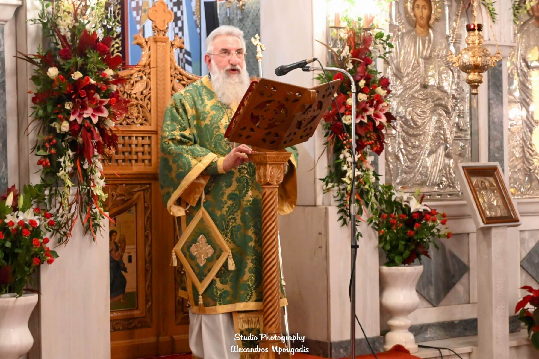 Το απόγευμα της Τρίτης 25 Νοεμβρίου,  στον φερώνυμο περικαλλή Ενοριακό Ιερό Ναό της λακωνικής πρωτεύουσας, τελέσθηκε ο Μέγας πανηγυρικός Πολυαρχιερατικός Εσπερινός μετ’ αρτοκλασίας. Στην πανηγυρική εσπερινή λατρευτική σύναξη συμμετείχαν, ως προσκεκλημένοι του σεπτού Ποιμενάρχη μας κ. Ευσταθίου, ο Σεβασμιώτατος Αρχιεπίσκοπος Κρήτης κ. Ευγένιος Β΄, οι Σεβασμιώτατοι Μητροπολίτες Φωκίδος κ. Θεόκτιστος, Μάνης κ. Χρυσόστομος και Γόρτυνος και Μεγαλοπόλεως κ. Νικηφόρος και ο Αρχιγραμματέας της Ιεράς Συνόδου της Εκκλησίας της Ελλάδος Θεοφιλέστατος Επίσκοπος Σκιάθου κ. Ιωάννης, ο οποίος και χοροστάτησε. Στον Εσπερινό συμμετείχαν επίσης ο Θεοφιλέστατος Επίσκοπος Λακεδαιμονίας κ. Θεόφιλος, Βοηθός Επίσκοπος της Ιεράς Μητροπόλεώς μας, και πλειάδα κληρικών απ’ όλη την Μητροπολιτική μας περιφέρεια.