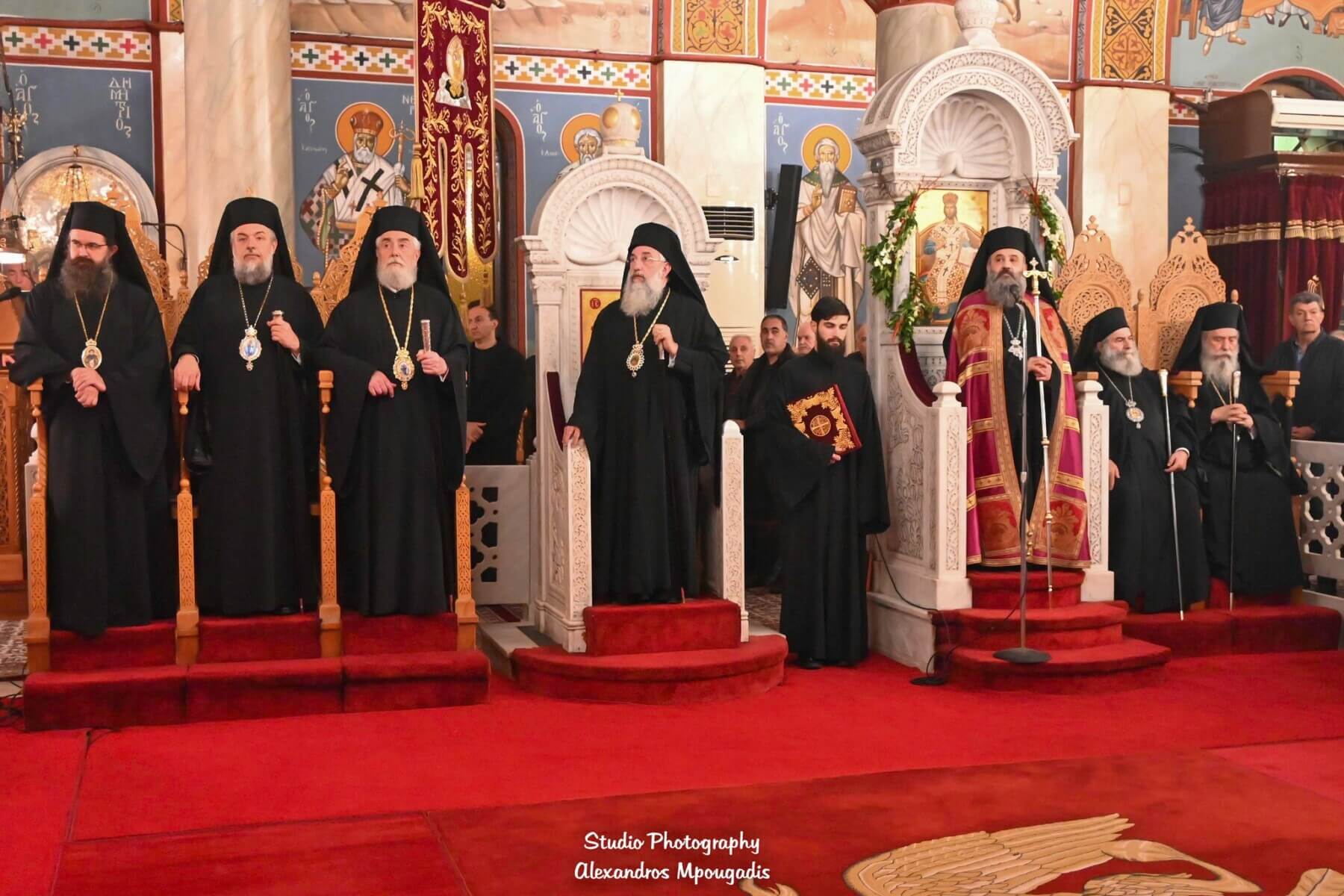 Την κυριώνυμη ημέρα της εορτής, Τετάρτη 26 Νοεμβρίου 2025, στον πανηγυρίσαντα περικαλλή Ιερό Ναό, τελέσθηκε αρχικά ο Όρθρος χοροστατούντος του Σεβασμιωτάτου Αρχιεπισκόπου Κρήτης κ. Ευγενίου Β΄, ενώ ακολούθησε η αμφιοφορία του σύμφωνα με το βυζαντινό τυπικό. Τους άρτους ευλόγησε ο Σεβασμιώτατος Μητροπολίτης  Φωκίδος κ. Θεόκτιστος. Στην Πολυαρχιερατική Θεία Λειτουργία που ακολούθησε συμμετείχαν επίσης οι Σεβασμιώτατοι Μητροπολίτες  Μάνης κ. Χρυσόστομος και Γόρτυνος και Μεγαλοπόλεως κ. Νικηφόρος, ο σεπτός Ποιμενάρχης μας κ. Ευστάθιος, ο οποίος και προέστη, και ο Θεοφιλέστατος Επίσκοπος Λακεδαιμονίας κ. Θεόφιλος, Βοηθός Επίσκοπος της Ιεράς Μητροπόλεώς μας.